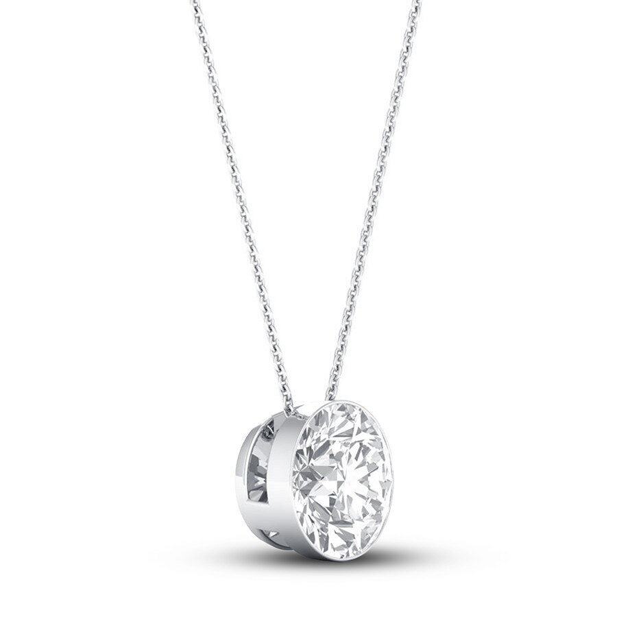 Diamond Solitaire Necklace 1 Carat Round-cut 14K White Gold 16