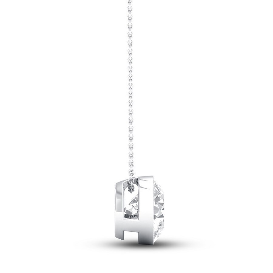 A simple setting allows for a clear view of a brilliant 1-carat round diamond in this unforgettable necklace for her. Styled in 14K white gold to further complement the dazzling diamond, the necklace includes a 16-inch cable chain that fastens with a lobster clasp.