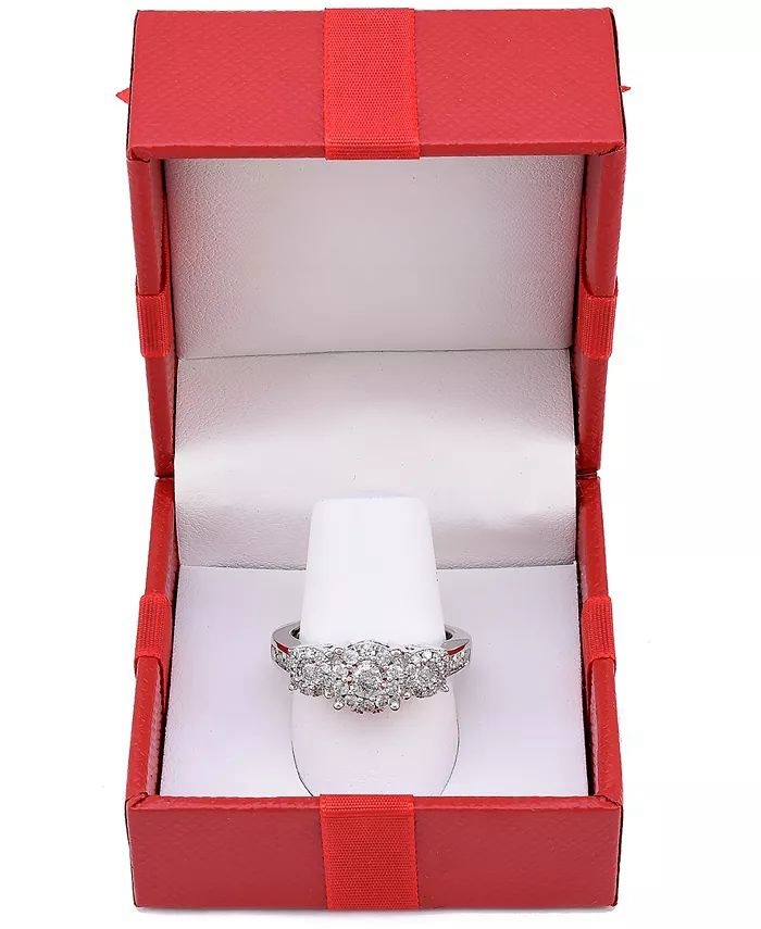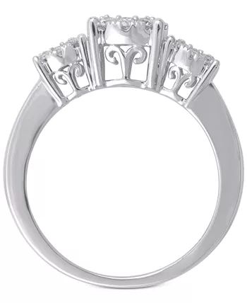 Make her wishes come true with this romantic round-shape three stone halo diamond engagement ring (3/4 ct. t.w.) beautifully designed in 14k gold, white gold or rose gold.