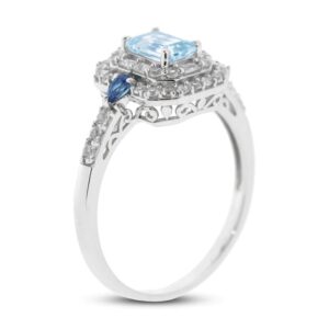 Aquamarine/London Blue Topaz/White Sapphire Ring Sterling Silver